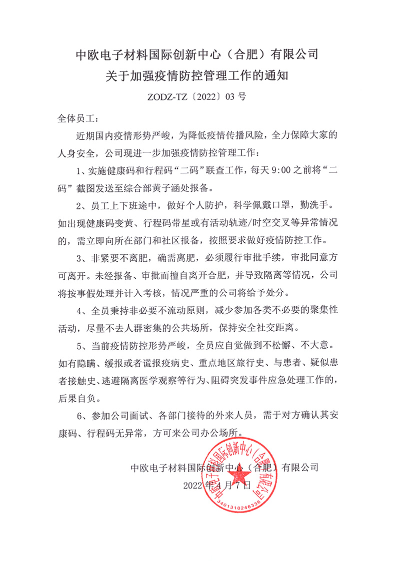 开云在线登录(合肥)有限公司开云(中国)加强疫情防控管理工作的通知