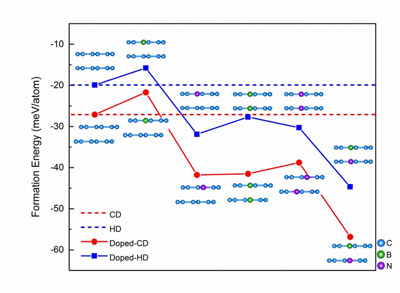 图2. 不同掺杂方式的形成能(压缩双层石墨烯合成金刚石烯)