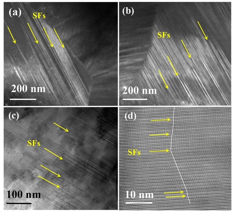 近期,中科院合肥研究院固体物理研究所能源材料与器件制造研究部秦晓英研究员课题组在Cu2SnSe3材料体系热电性能调控方面取得新进展。研究人员通过在Cu2SnSe3化合物中构建高密度堆垛层错与内生纳米针(nanoneedle)来散射中低频声子并大幅提升了其热电性能,使得Cu2Sn0.88Fe0.06In0.06Se3-5wt.%Ag2Se样品的热电优值ZT在848K时高达1.61,相关研究结果以 “Creating high-dense stacking faults and endo-grown nanoneedles to enhance phonon scattering and improve thermoelectric performance of Cu2SnSe3” 为题发表于Nano Energy (Nano Energy, 2022, DOI: https://doi.org/10.1016/j.nanoen.2022.107510 ) 上。