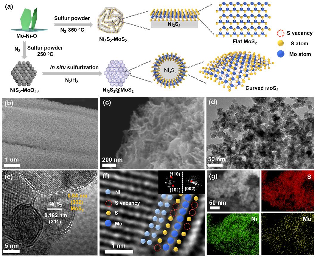 图1. Ni3S2@BLMoS2的合成与结构表征。