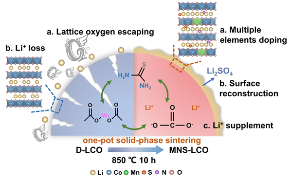 近期,中国科学院合肥物质院固体所环境与能源纳米材料开云(中国)在废旧钴酸锂电池直接再生为电化学性能优异的正极材料的研究中取得新进展。通过一种简单的“一石三鸟”的固相烧结策略,可以有效地将废旧LiCoO2(D-LCO)回收升级为高性能的正极材料高压LiCoO2(MNS-LCO)。相关研究成果以“Upcycling of Degraded LiCoO2 Cathodes into High-Performance Lithium-Ion Batteries via A Three-In-One Strategy”为题发表在国际期刊Advanced Energy Materials (Adv. Energy Mater., 2023, DOI: 0.1002/aenm.202302058)上。 锂离子电池具有高能量密度、长寿命、低成本、低自放电等特点,广泛应用于便携式电子产品、电动汽车、电网级储能系统等领域。其中LiCoO2由于其固有的高能量密度以及方便大规模生产等优点,在便携式电子器件中占据主导地位。而全世界每年从废弃的便携式电子产品中产生的废旧锂离子电池超过10万吨,如果处理不当,将造成严重的环境危害和宝贵金属资源的巨大浪费。同时,随着人们对电池能量密度需求不断增加,提升截止电压成为提高能量密度最有效的策略之一。因此,如果将废旧LiCoO2回收再生为高压LiCoO2,不仅实现了金属资源的可持续利用,还可以满足高压LiCoO2材料的发展趋势。