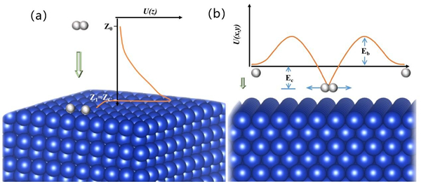 近期,中国科学院合肥物质院固体物理所能源材料与器件制造研究部杨勇研究员团队在氢的表面活化解离与扩散过程的量子隧穿效应研究方面取得系列进展。相关研究论文被选为编辑推荐文章(Suggested by Editors),以Rapid Communication 和Article的形式发表在Chinese Physics B和The Journal of Physical Chemistry C上。 氢在固体材料表面的解离、吸附和扩散在一些重要的物理和化学过程中扮演着重要的角色。例如,聚变反应装置第一壁材料中滞留氚的去除,氢能的存储和释放,氢燃料电池的电极反应以及表面催化。氢是宇宙中质量最小,存在最普遍的元素。相对于其他元素而言,氢原子的动力学过程中会有显著的原子核的量子运动,即所谓核量子效应。近年来,原子的量子隧穿在小分子化学过程的反应速率和选择性中的重要作用被越来越多的报道。那么,量子隧穿效应在氢的固体材料表面活化解离与扩散的过程中会扮演什么角色呢?