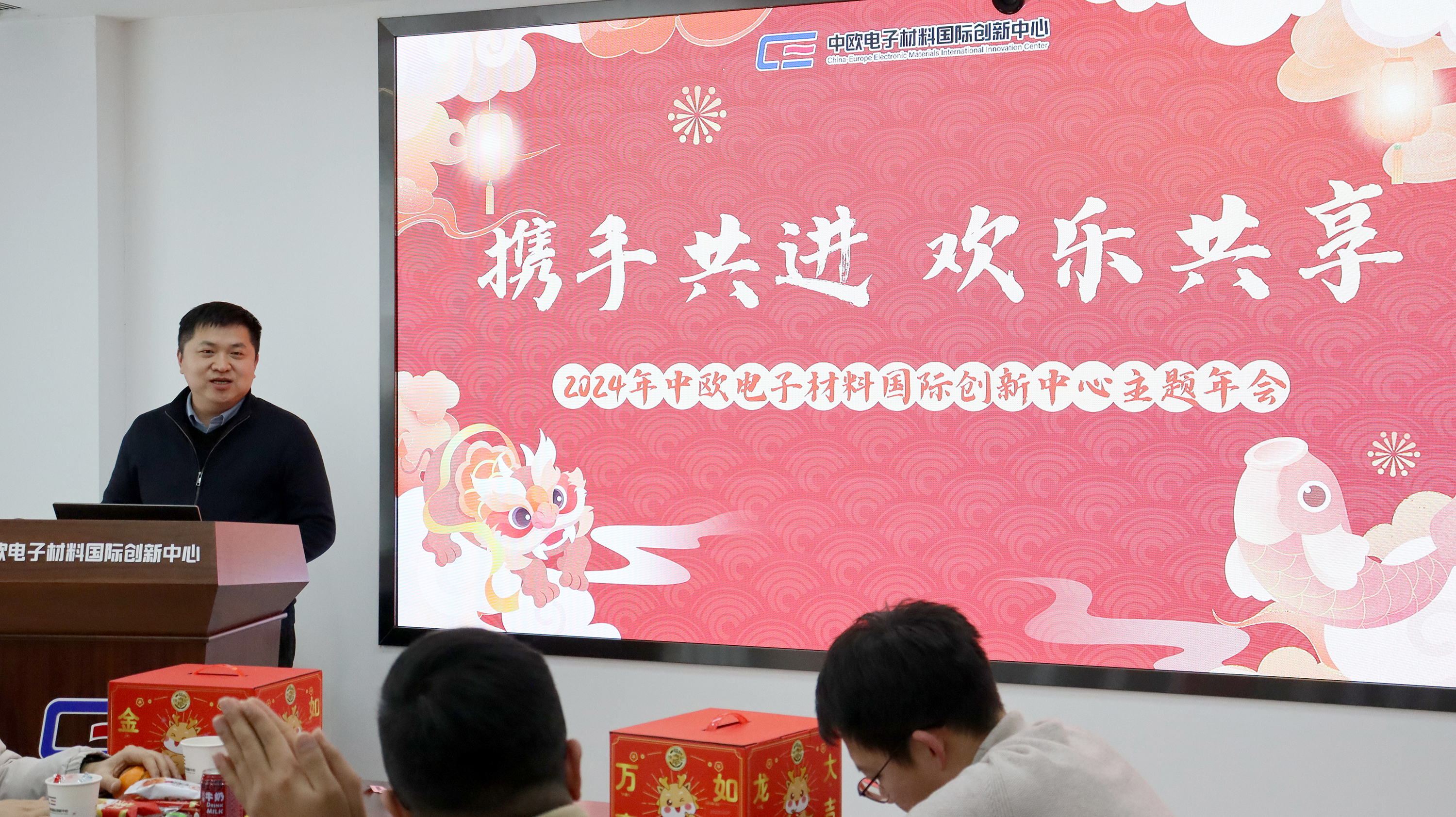 春风得意启新程,策马扬鞭勇奋进。年会尾声,创新开云(中国)总经理宫艺发表了总结讲话。他首先对2023年辛勤付出的各位同事表示真诚的感谢,向全体员工致以最真挚的新春祝福。希望全体员工在新的一年里,坚定目标不动摇,凝心聚力促发展,不断突破关键核心技术研发,推动电子材料产业技术持续发展。
