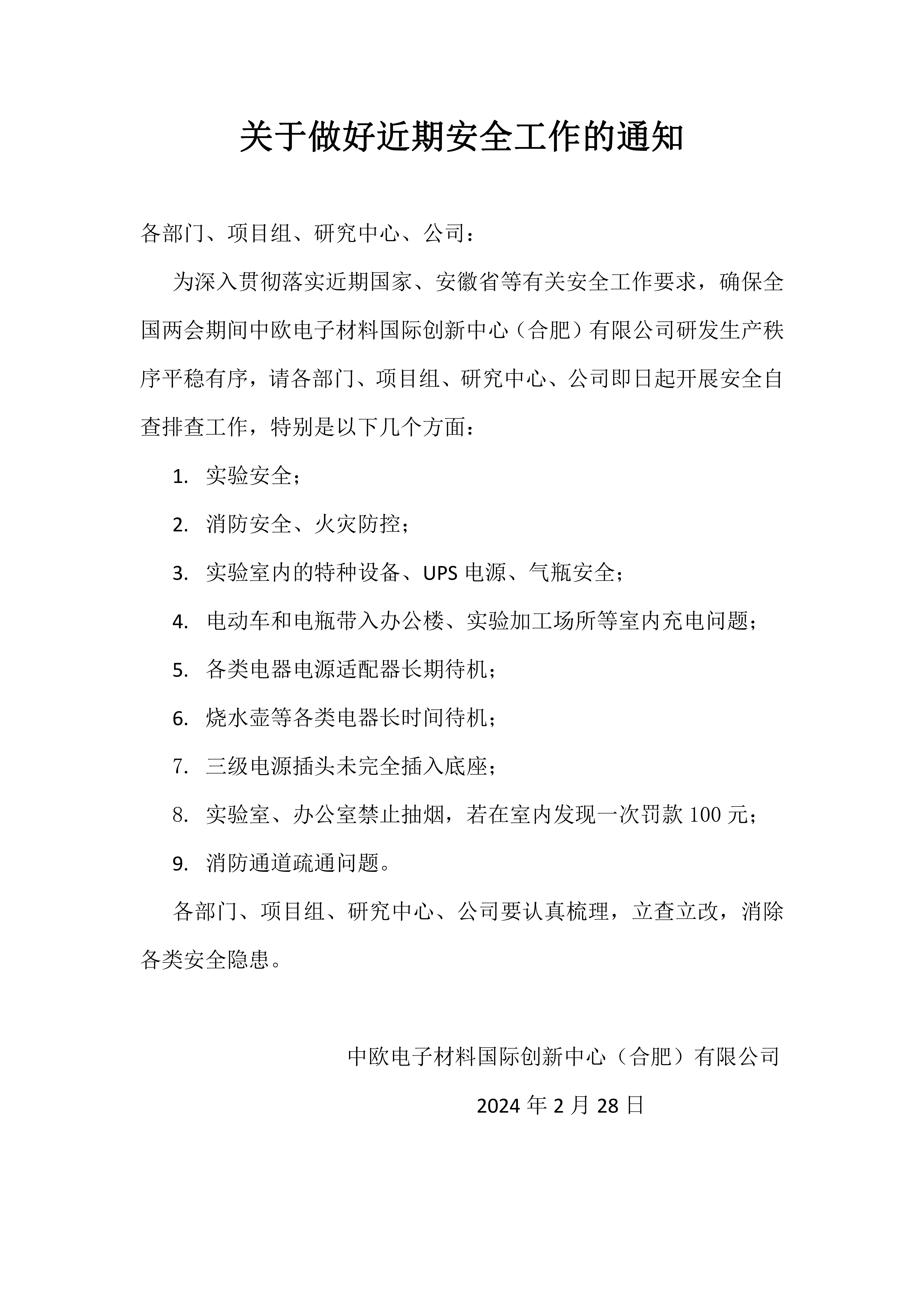 开云(中国)做好近期安全工作的通知