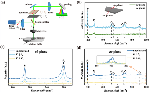 图1. 单晶在ac 面呈现出七个振动模式,其中有两个Eg 模式和五个A1g 模式。