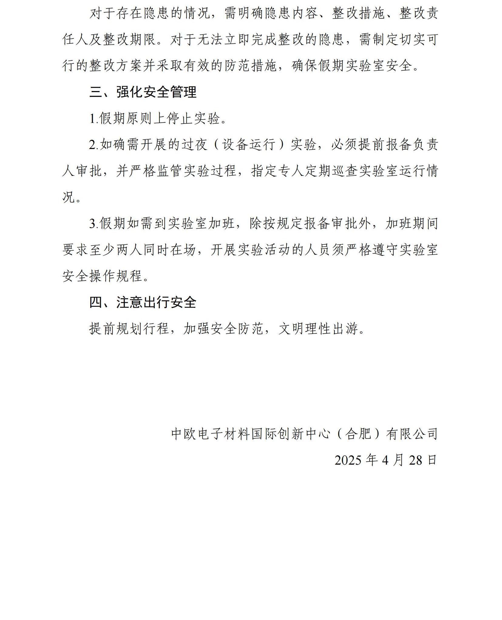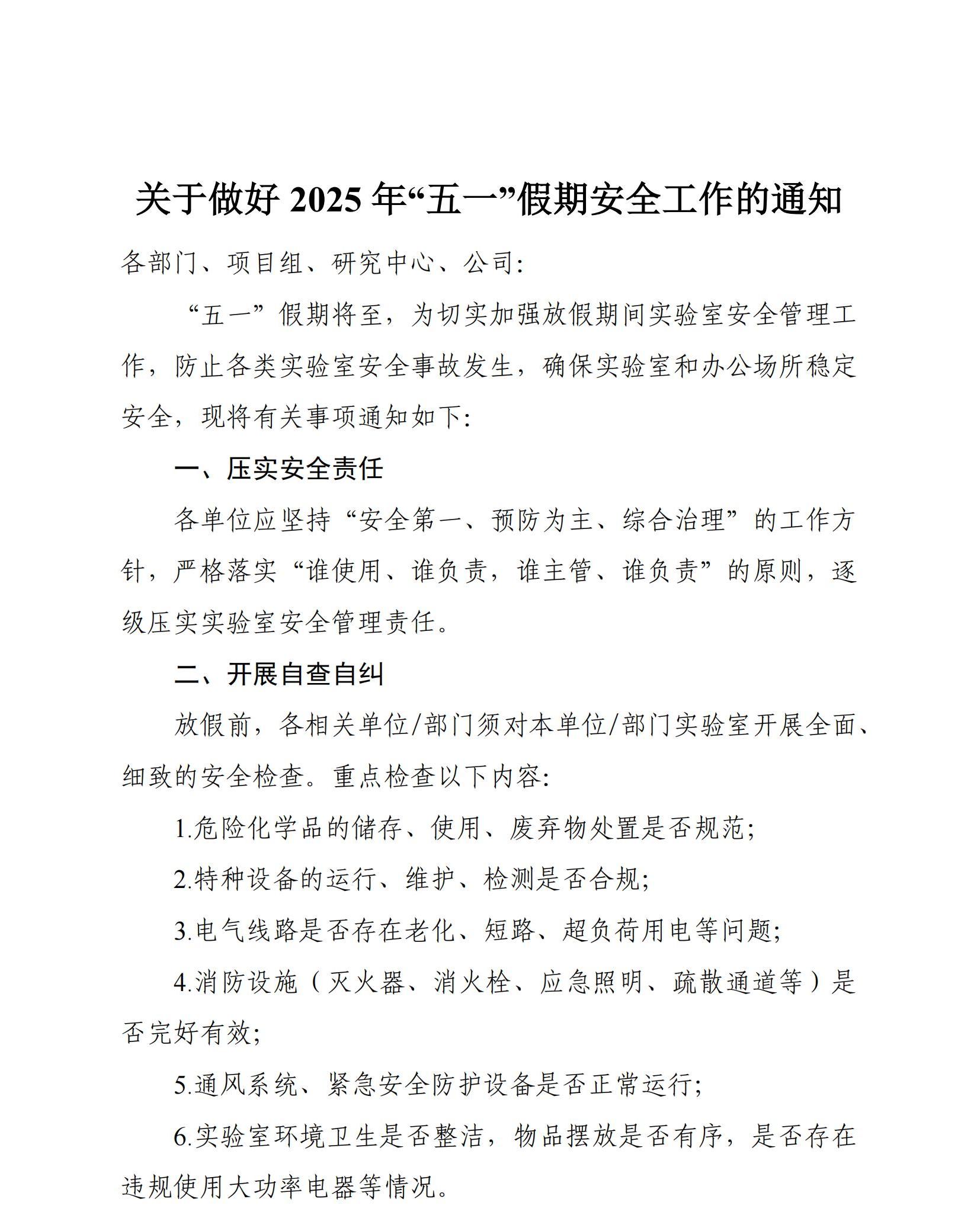 开云(中国)做好2025年“五一”假期实验室安全工作的通知